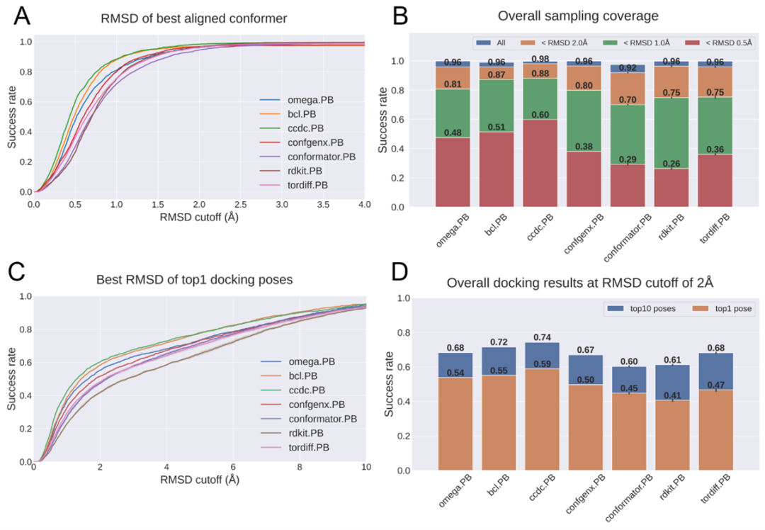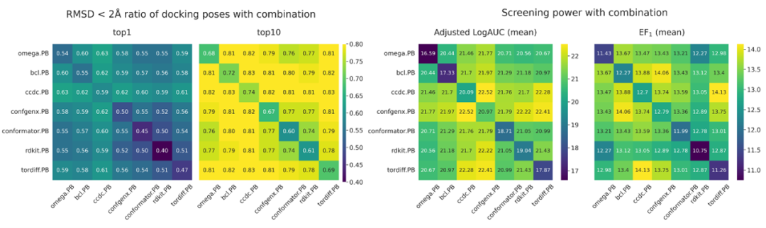 图3.构象采样方法的组合能够进一步提升对接能力和筛选能力