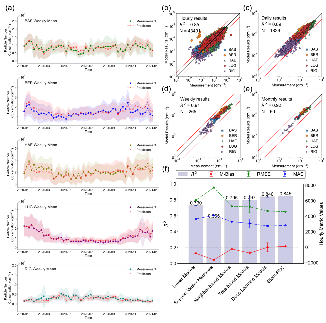 构建高精度AI模型,实现低成本、高效UFPs暴露评估。传统UFPs监测成本高昂,覆盖范围有限。本研究利用瑞士长期标准化颗粒数浓度监测数据,结合多源数据(如空气质量再分析、气象数据、交通流量等),构建高精度AI模型,有效降低评估成本,并提升模型的稳定性和泛化能力。