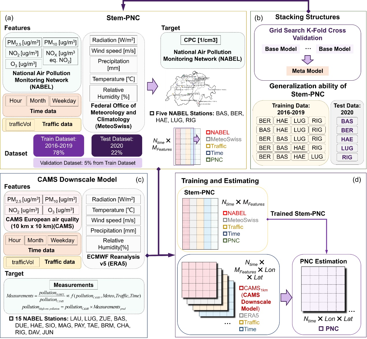 图1. 堆叠式集成机器学习颗粒物数量浓度模拟方法(Stem-PNC)框架图