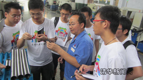 图为实践支队成员在生产车间与技术人员交流。朱学军